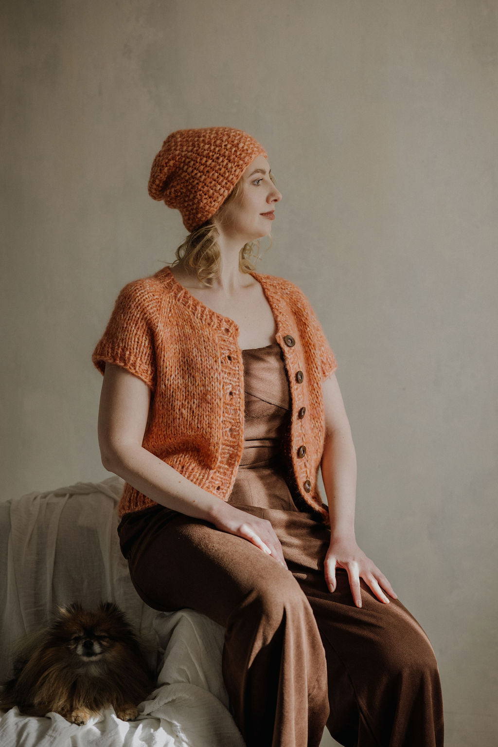 Kolory w bezrękawniku- pastelowy pomarańcz, pomarańcz, słodki róż, rudy.