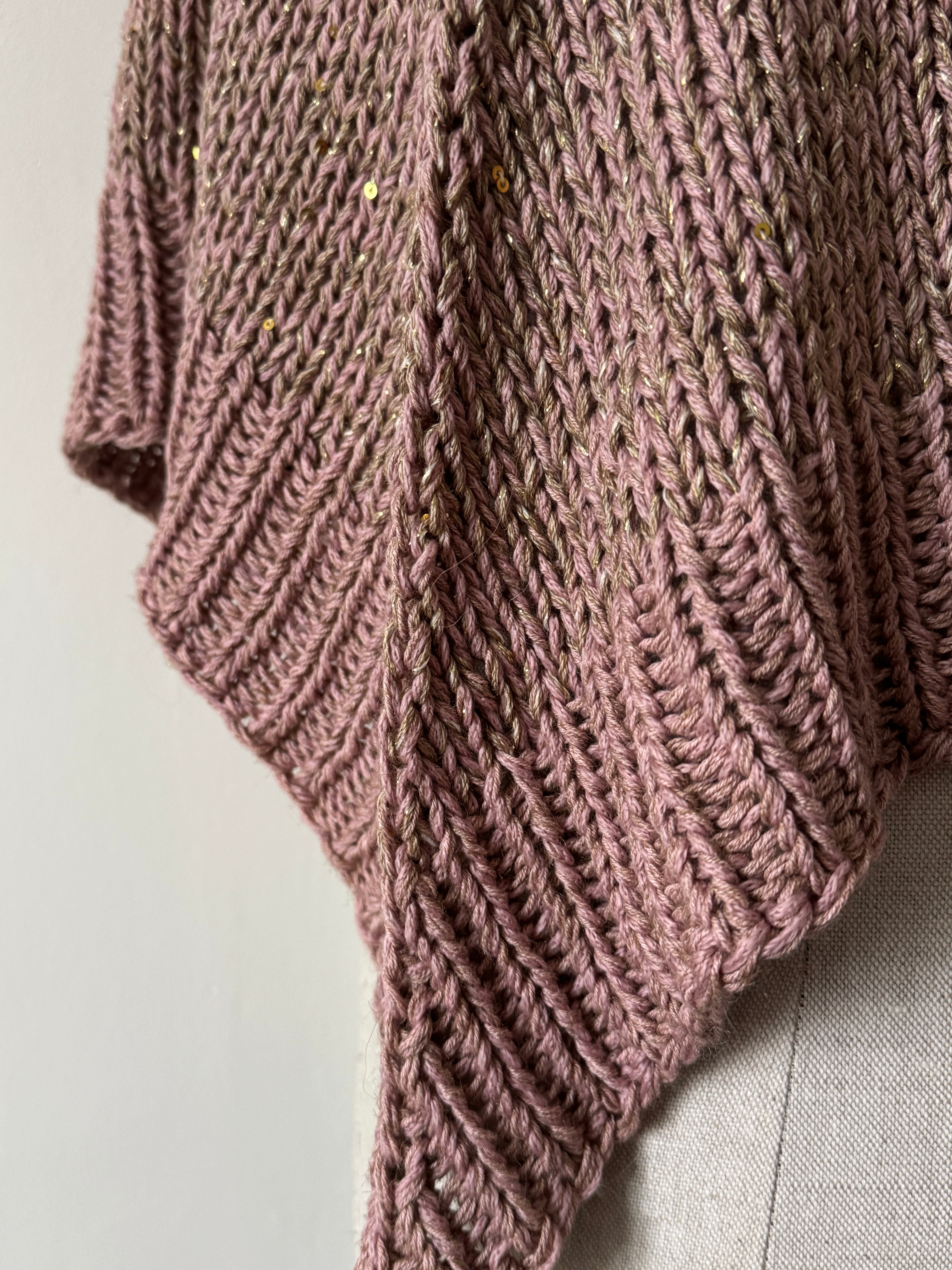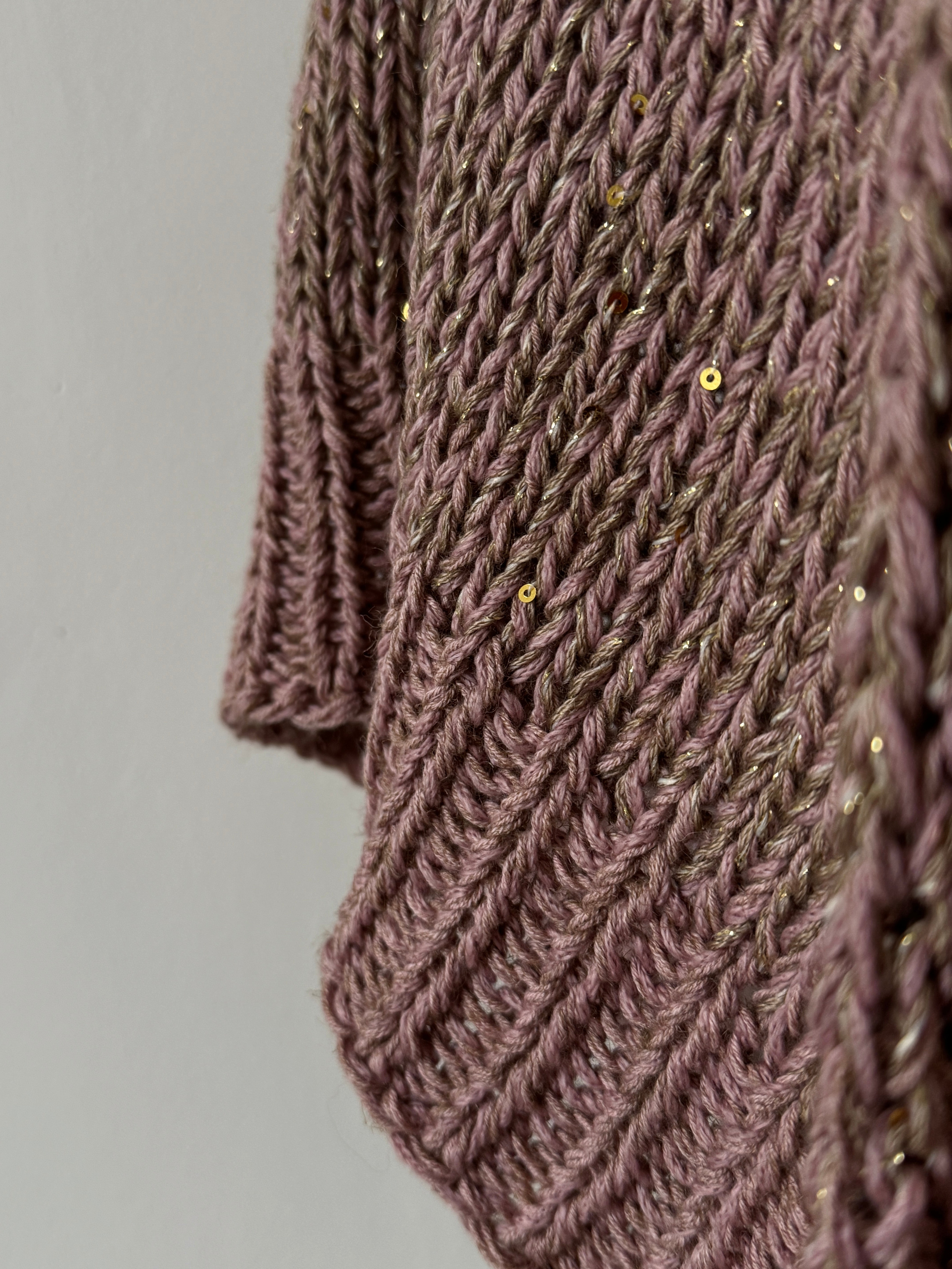 Skład: bawełna, alpaka, merynos, nici metalizowane i bardzo drobne cekiny