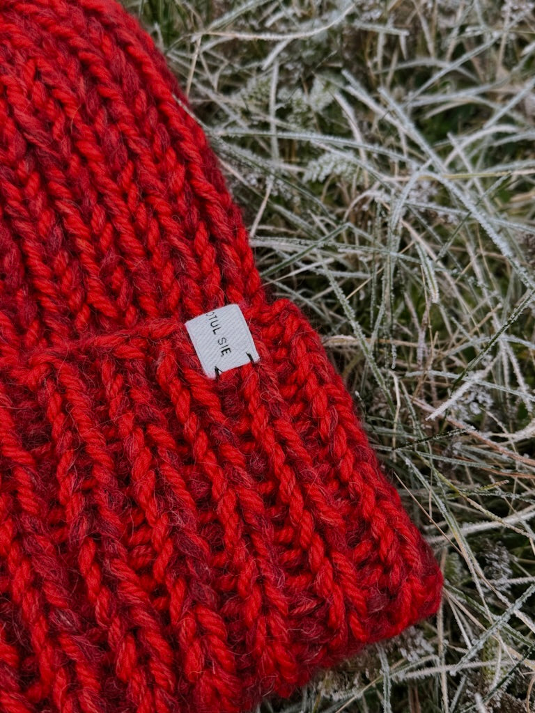 Uwaga! Kolorystyka czapki może być różna, na różnych urządzeniach elektronicznych. To melanż ostrej i przytłumionej czerwieni.