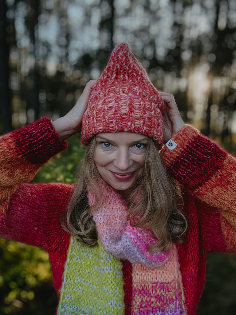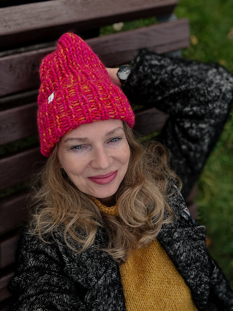 Każda czapka jest inna i unikatowa dzięki moim autorskim miksom włóczkowo kolorystycznym.